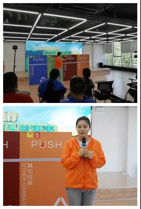 本次活动整体分为六部分,分别为垃圾分类知识宣讲、志愿者代表宣读《垃圾分类回收倡议书》、垃圾分类现场竞答、拾起卖虚拟再生资源工厂体验、绿植兑换及经验分享活动。活动中,大家仔细聆听、踊跃参与。
