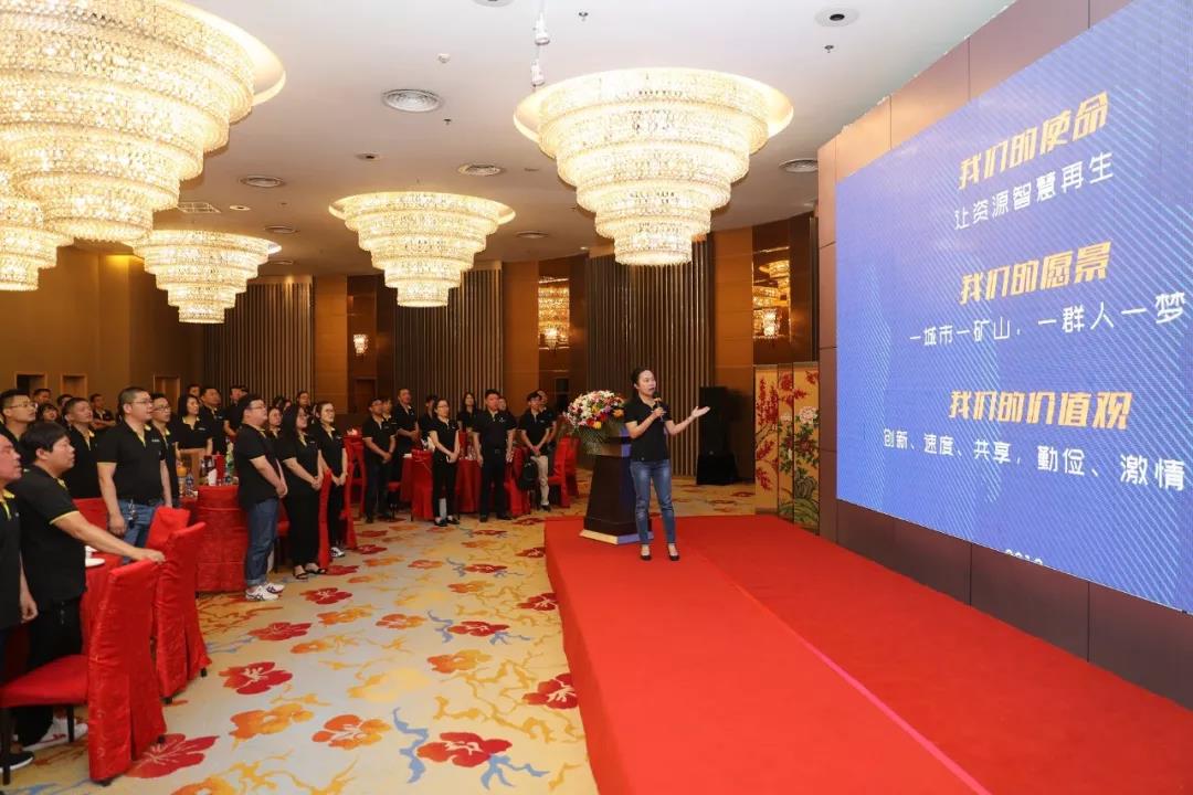 在总裁致辞环节,陈奕总裁从“感谢成长”的话题切入,同时感谢了时代、伙伴以及我们的拾起卖本身;接着他将拾起卖内核进行了深度剖析,让一城市·一矿山的理念根植每一个拾起卖人的内心;在“共享”这个话题中陈奕总裁解读了拾起卖的共享精神,鼓舞大家共担风雨共享利益。