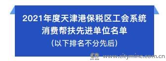 为在全区营造崇尚先进、学习先进、争当先进、赶超先进的浓厚氛围,进一步引领全区基层单位在消费帮扶行动中贡献力量,保税区总工会联合保税区商务局,决定授予九三集团天津大豆科技有限公司工会委员会等23家基层工会及天水市捷锦商贸有限责任公司“2021年度天津港保税区工会系统消费帮扶先进单位”称号。