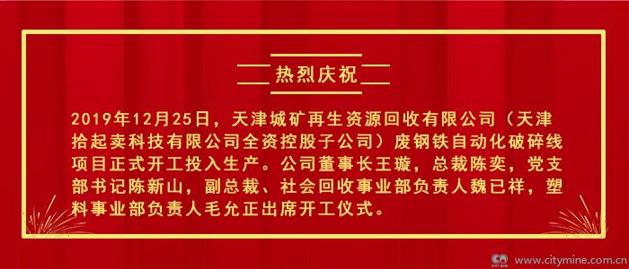 祝贺 | 天津城矿废钢铁自动化破碎线项目正式开工投入生产