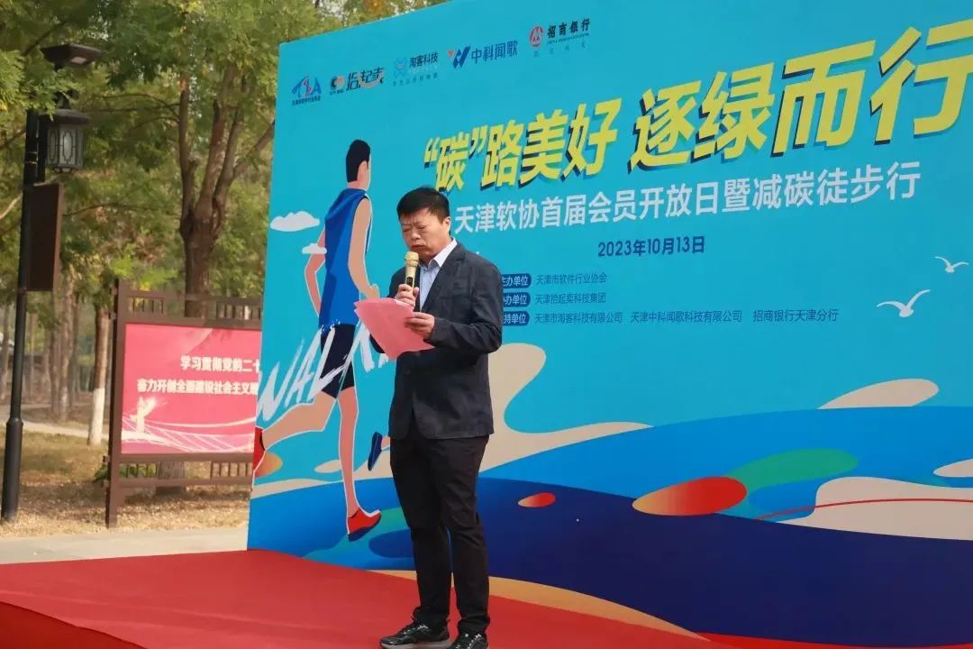 10月13日上午,由天津市软件行业协会主办,天津拾起卖科技集团协办,天津市淘客科技有限公司、天津中科闻歌科技有限公司、招商银行天津分行支持的“碳”路美好,逐绿而行——天津软协会员开放日活动成功举办。近百位会员单位代表参加本次活动,协会会长杨波为本次活动致辞。