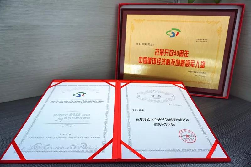 拾起卖总裁陈奕先生被授予“改革开放40周年中国循环经济科技创新领军人物”荣誉。