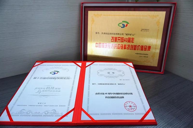 会议上,授予拾起卖科技有限公司“城市矿山”“改革开放40周年中国循环经济供应链科技创新价值品牌”荣誉;