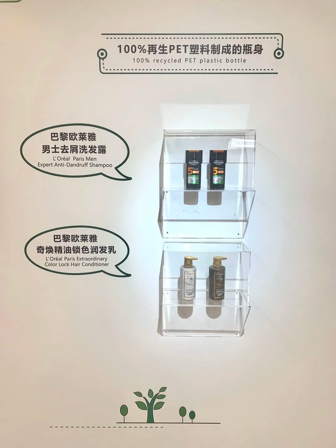 欧莱雅旗下多个品牌都在回收这一领域多措并举,目前在所有的兰蔻门店里都有空瓶回收的项目,已回收超过一百万只空瓶,之后会经过专业公司将空瓶进行再利用,如制成桌子或是椅子,用于资助贫困山区小学等。