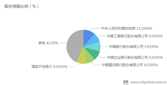 第二大股东:国家开发银行、中国银行股份有限公司、中国建设银行股份有限公司、中国工商银行股份有限公司、中国农业银行股份有限公司,各持股9.04%;