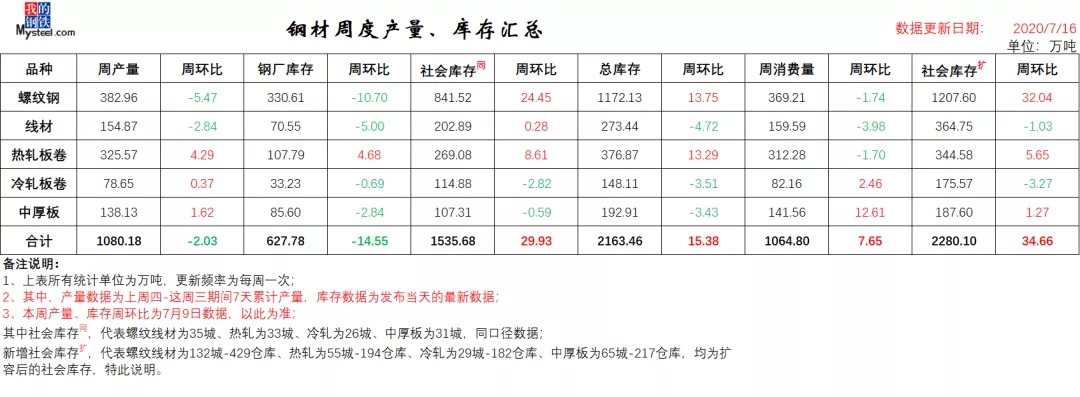 钢材周度产量、库存汇总数据表