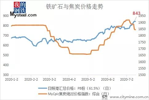 铁矿石与焦炭价格走势图