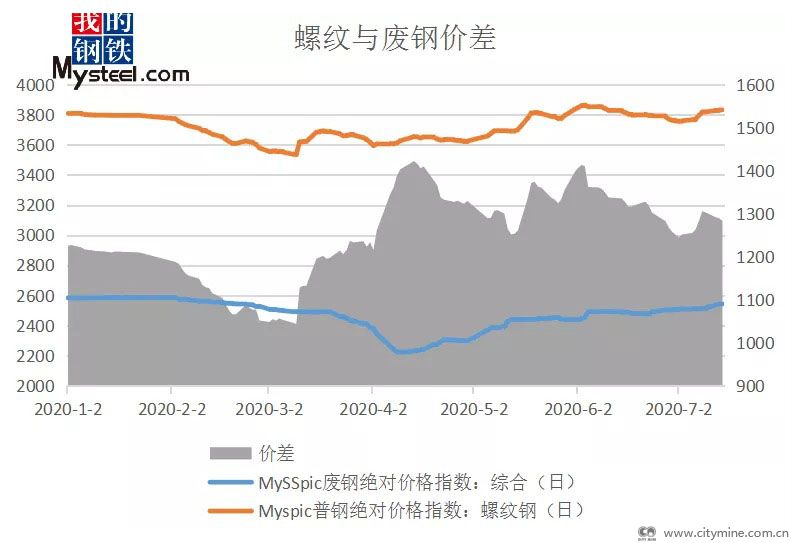 螺纹与废钢价差走势图