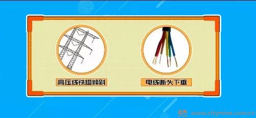 看到高压线铁塔倾斜、电线断头下垂等情况别靠近,水是电导体,会导致触电。