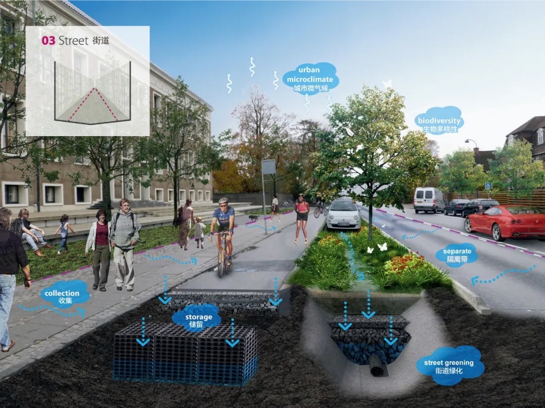 于是,哥本哈根市政府开始着手为城市的各个分区制定具体的海绵城市景观设计方案。