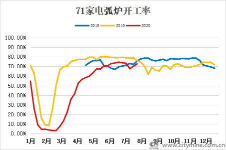 图8:71家独立短流程钢厂开工率