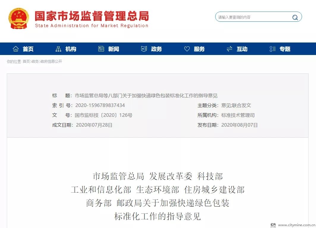 2020年08月14日8月7日,市场监管总局、发展改革委、科技部、工业和信息化部、生态环境部、住房城乡建设部、商务部、邮政局联合印发《关于加强快递绿色包装标准化工作的指导意见》(以下简称《指导意见》),对未来三年我国快递绿色包装标准化工作作出全面部署。