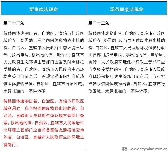 2.增加了跨省转移固废利用的,需报移出地生态环境主管部门备案的要求。
