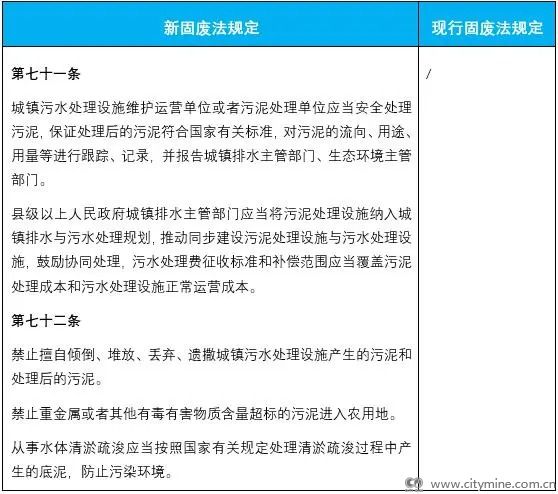 2.新增了城镇污水处理设施维护运营单位和污泥处理单位对污泥处理的义务。
