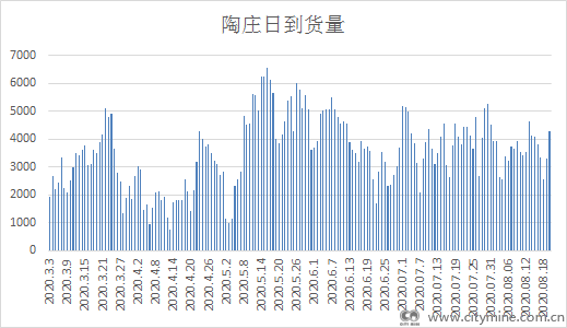最近一段时间废钢回收企业到货量相对比较稳定,陶庄日均到货在3775.5吨,到货量已经回归到正常水平。截止8月20日,陶庄城矿废钢进出库统计,昨日废钢到货量为4287.29吨,日环比增加982.75吨,周环比减少332.15吨。上游供货商出货也多采取快进快出的方式操作,供货量相对稳定。基地市场价格逐渐抬升有助于吸货,保证正常到货量。