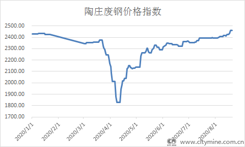 本周浙江陶庄废钢价格以涨为主,市场价格逐步抬升。截止8月20日,Mysteel陶庄城矿废钢价格指数为2461.06,周环比上涨47.28,今日陶庄城矿废钢价格较昨日持平。目前市场货源较少,近期市场看涨预期比较浓,部分废钢基地提价抢占废钢资源,市场价格逐渐拉高。