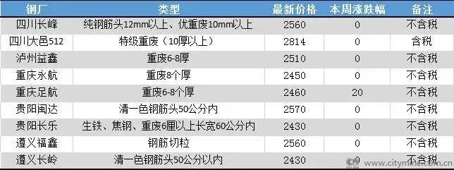 表一:西南部分钢厂废钢采购价格