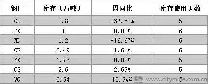 表二:西南部分钢厂库存情况