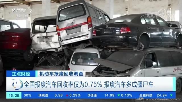 安信证券机械行业首席分析师 李哲:很多消费者并不知道车怎么正常地报废,所以在各地产生了很多僵尸车。所谓僵尸车,就是车辆不开了以后直接停在某一个地方,不再继续使用。另外,我们国家其实没有强制的报废标准,造成很多车长期服役,甚至再流到二手车市场进行二次服役。