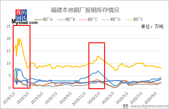 今年福建省内的钢厂库存水平较去年有一定的下移,尤其体现在春节前期的库存水平,有明显的下降。在今年突发的特殊事件之前,2019年下半年开始废钢市场整体行情处于供不应求的状态,随着价格的上涨,本地钢厂的库存水平相应下降。对于利润相对丰厚的长流程钢厂影响远不及独立电炉厂,完全采用废钢作为炼钢原材料的电炉厂,今年因原料供应不足而减产、停产的现象屡见不鲜,尤其是在成品材行情处于下行阶段的情况下。故预计今年国庆节内,省内可能也会有钢厂顶不住成本压力而减产停产,随之而来的全国范围内的电炉废钢需求下降,会造成废钢价格支撑的减弱。同样的,钢厂的废钢库存低水平运行也有好处,第四季度临近春节,针对明年春节期间的废钢消耗,钢厂必须提前做好准备,特别是今年这个特殊时期,春节节假日时间的不确定性导致必须多备库存,备足库存才能抵御原料端紧缺带来的生产困扰,预示着后期废钢仍有强劲的需求体现,长期来看小编对废钢价格抱谨慎乐观看法。