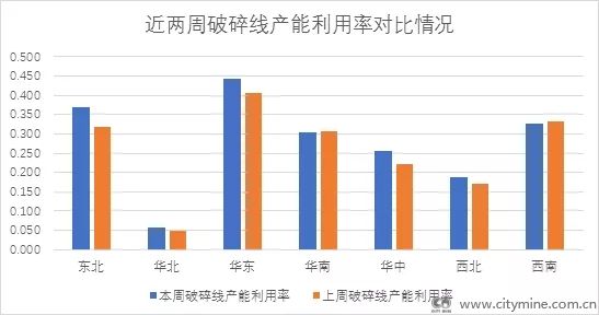 图3:各区域废钢破碎线产能利用率 数据来源:Mysteel废钢事业部