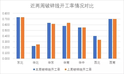 图2:各区域废钢破碎线开工率情况 数据来源:Mysteel废钢事业部