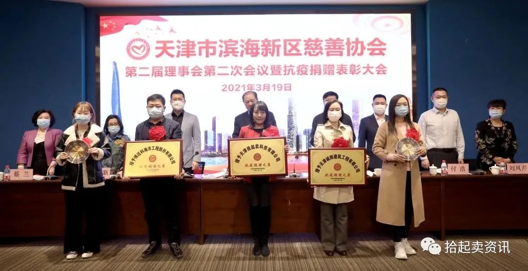 2021年03月27日近日,滨海新区慈善协会第二届理事会第二次会议暨抗疫捐赠表彰大会隆重召开。天津拾起卖科技有限公司以企业高度社会责任感,积极参与疫情防控,在新冠肺炎疫情捐赠中作出突出贡献,获“抗疫捐赠之星”荣誉称号。