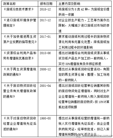 自1995年以来,中国政府发布并实施系列政策促进废纸回收行业发展。