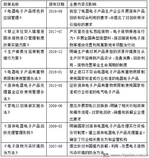 电子回收行业政策汇总
