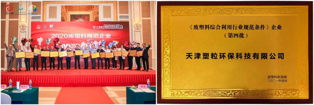 截止2020年底,工信部已公布四批符合《废塑料综合利用行业规范条件》企业名单,共计54家。此次大会特别举行废塑料规范企业颁奖典礼,鼓励行业有更多的规范企业,助力行业实现跨越式发展。天津塑粒环保科技有限公司总经理陈焕群先生代表公司出席并接受授牌。