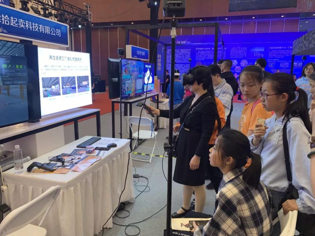 科技周开幕活动期间,天津拾起卖科技有限公司展示了自主研发的再生资源工厂虚拟仿真系统。公司科研团队突破性地将虚拟仿真技术与再生资源领域结合,打造了全国首例再生资源工厂虚拟仿真系统。该系统以VR智能技术为支撑,集成多媒体技术和网络通信技术,用人工虚拟环境模拟真实世界,1:1仿真还原真实的再生资源工厂,体验者可以深入再生资源车间、厂房,近距离地观察再生资源分选、加工设备操作,感受再生资源工厂变废为宝的生产加工的真实场面。