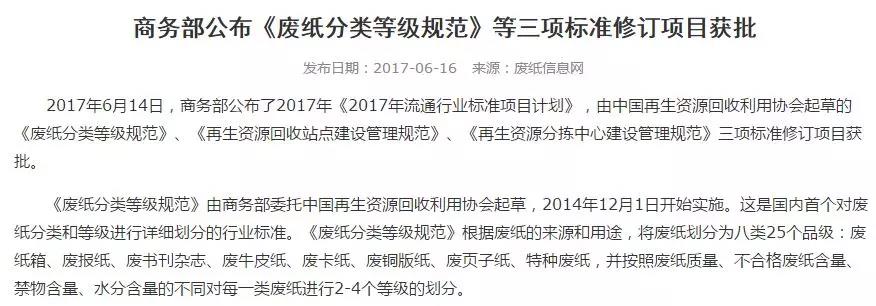 废纸回收过程中未能充分分类,只能作为混合废纸降级使用;