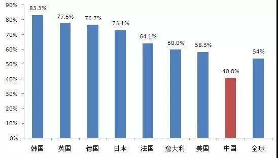 ▲ 我国废纸回收率远低于全球发达国家,也低于全球平均水平