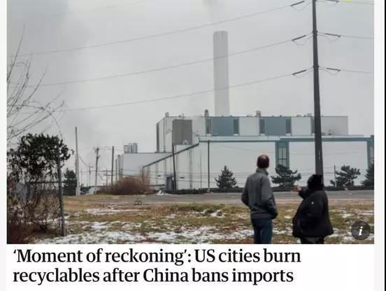 (图为英国卫报报道,清算时刻:中国禁止进口后,美国城市焚烧可回收利用的垃圾)