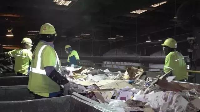 (图为垃圾分类线上的美国工人们 图源:央视网)