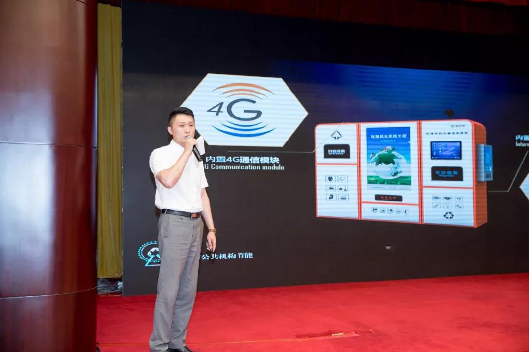 拾起卖公司代表刘晓荃介绍天津市公共机构智能回收体系。