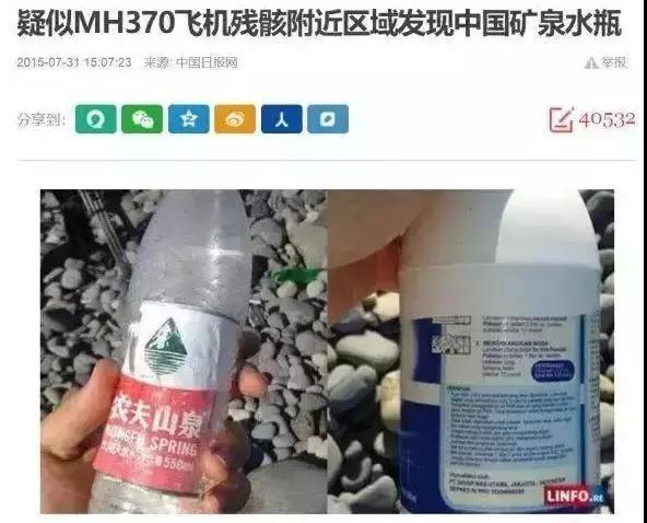 就连马航MH370飞机残骸附近也出现了农夫山泉的身影: