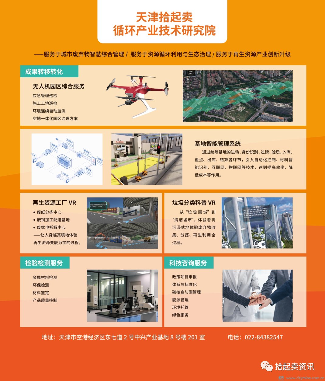 作为一家循环产业互联网高科技企业,拾起卖紧跟时代步伐,将互联网、物联网等先进技术引入传统再生资源行业,以“一城市一矿山”为战略目标,深耕城市矿山产业布局,倾力打造从废弃物产生源头到资源循环利用者之间的完整供应链,提供再生资源供应链“向前一公里”和“向后一公里”的闭环解决方案,为推动区域经济发展、城市矿山开发,助力再生资源产业高质量贡献民企力量。