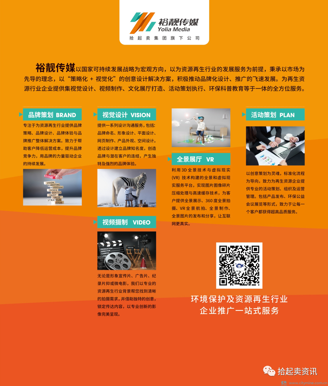 成立至今,裕靓传媒凭借独特的创意思维触觉和视觉传达直觉,迅速成为企业形象策划、品牌视觉战略及媒体宣传推广的专业机构。为再生资源行业企业提供集视觉设计、视频制作、文化展厅打造、活动策划执行、环保科普教育等于一体的全方位服务。