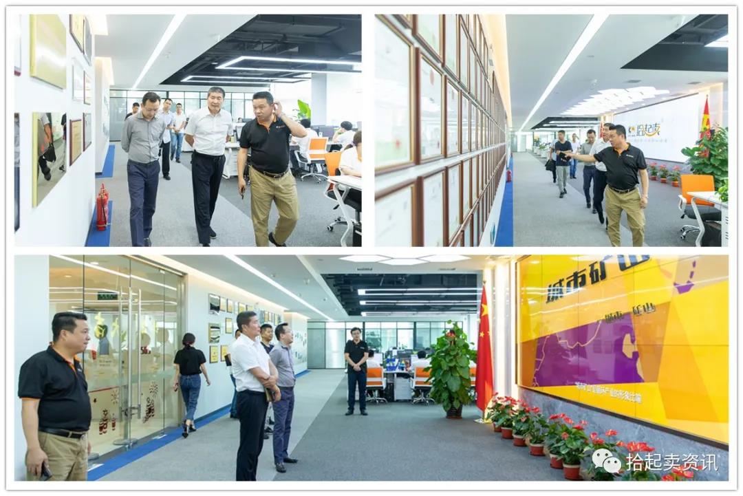 在总裁陈奕及相关负责人的陪同下,彭总一行在拾起卖数字化运营中心参观了红色文化教育园地、企业文化走廊、知识产权展示墙;观摩了“城市矿山”再生资源电商交易平台及“城市年代记忆馆”展区。