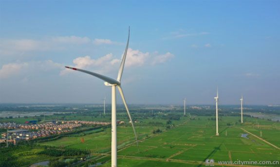 上图:江苏省徐州市睢宁县魏集镇风力发电机组。(洪星/摄,人民图片)