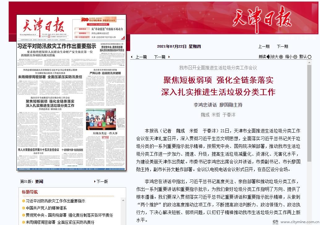 2021年07月22日21日,天津市全面推进生活垃圾分类工作会议在天津礼堂召开,深入贯彻习近平生态文明思想,全面落实习近平总书记关于垃圾分类的一系列重要指示批示精神,按照党中央、国务院决策部署,推动我市生活垃圾分类工作进一步加力、提速、升级,提高生活垃圾减量化、资源化、无害化水平,为建设美丽天津作出贡献。市委书记李鸿忠出席会议并讲话,市委副书记、市长廖国勋主持,副市长孙文魁作部署。会议以电视电话会议形式召开,在各区设分会场。