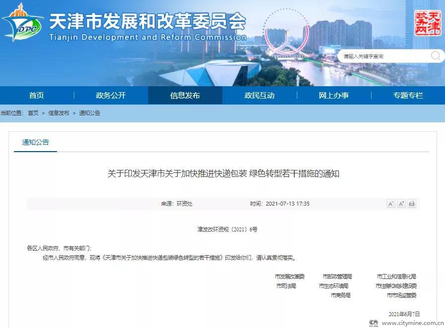 为进一步加强天津市快递行业包装治理,加快推进快递包装绿色转型,近日,天津市发展改革委、市邮政管理局、市工业和信息化局、市司法局、市生态环境局、市住房和城乡建设委、市商务局、市市场监管委联合发布了《天津市关于加快推进快递包装绿色转型的若干措施》(以下简称《措施》)。