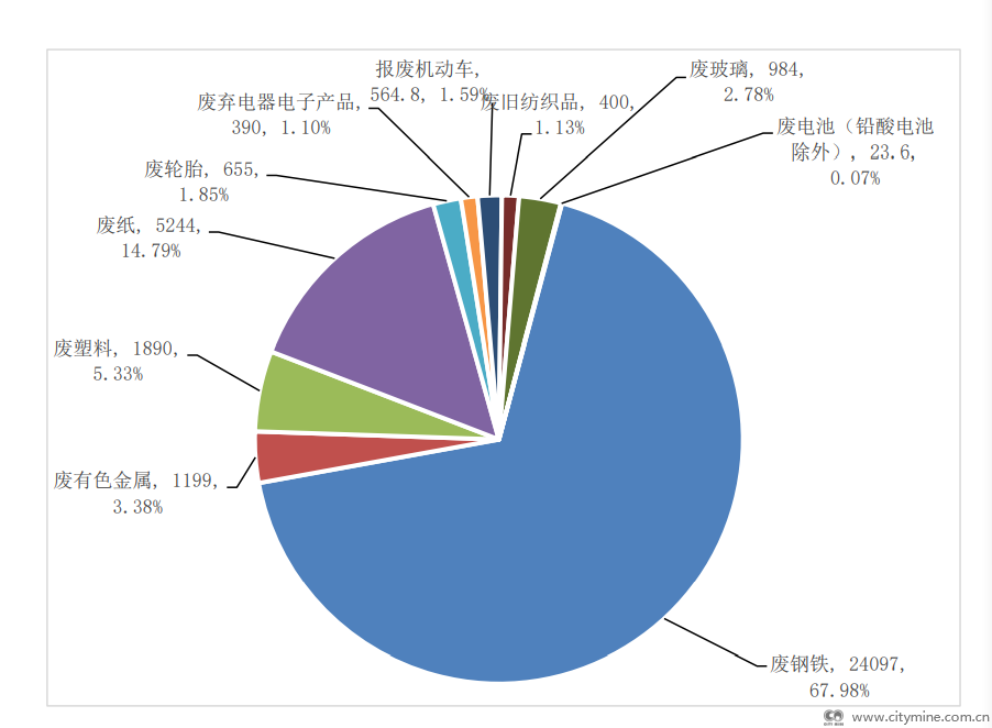 图 1 2019年我国主要品种再生资源回收量及占比情况图片