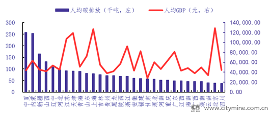 △ 我国各省人均碳排放及GDP