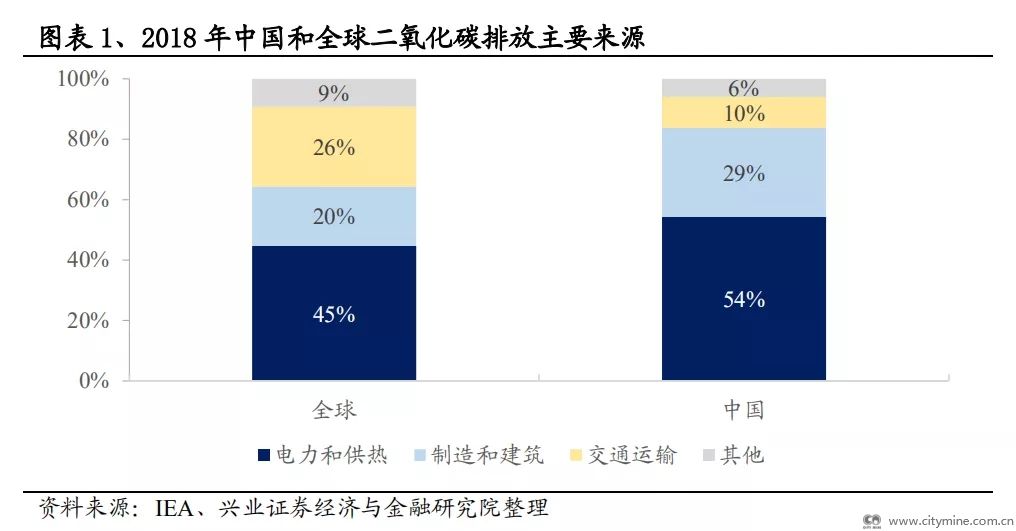 碳排放是目前被认为导致全球变暖的主要原因之一。我国碳排放中占比最大的(54%)来源于电力和供热部门在生产环节中化石燃料的燃烧。