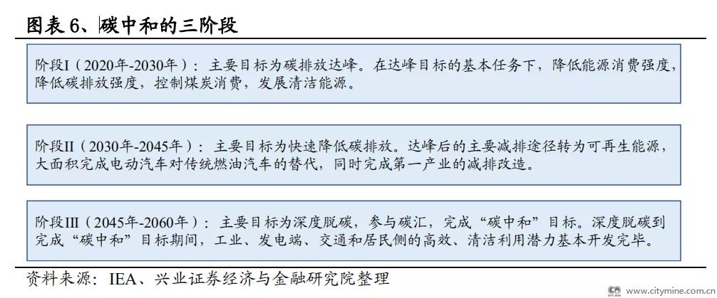 据此,结合我国的承诺的时间节点:1)从现在至2030年,我国的碳排放仍将处于一个爬坡期;2)2030-2060年这20年间,碳排放要渡过平台期并最终完成减排任务。
