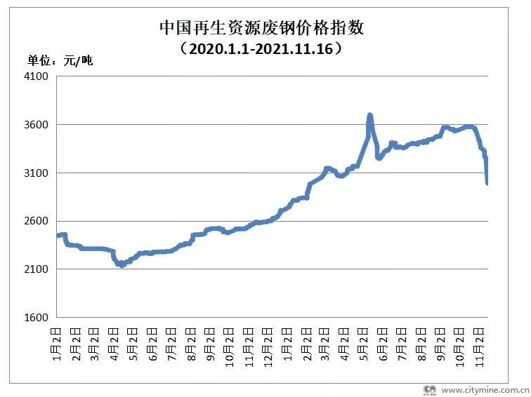 今日中国再生资源废钢价格指数2960元/吨,较昨日下跌27元/吨。今日废钢市场继续弱势下行。目前来看,部分地区钢厂检修增多,废钢需求量下降,继续压价废钢,废钢市场价格继续下探。贸易商库存低位,观望为主。短期废钢市场弱势依旧。