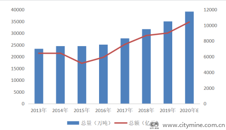△ 图1 2013-2020年再生资源回收总量和回收总额(资料来源:商务部、HGFR)