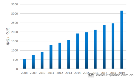 △ 图6 2008-2019年废弃资源综合利用行业规模以上企业资产总量(资料来源:国家统计局、HGFR)